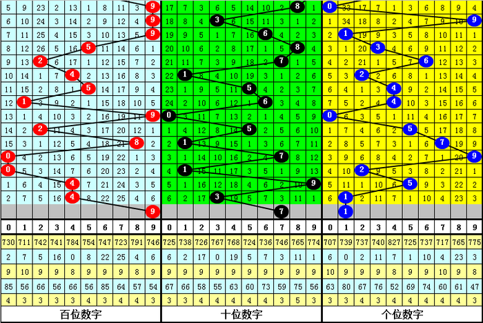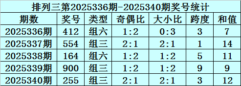 跨度分析:最近5期分别开出跨度:7、9、2、5、3,本期预计跨度走大,一码跨度参考8。
