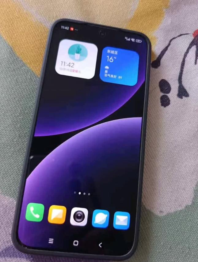 手机背面全新火山口悬浮大 Deco 的相机模组设计十分吸睛,Deco 造型巧妙融入小米 Logo 元素,居中双排对称布局,满满的秩序美感。三枚镜头与闪光灯呈独立的四炮筒造型,外围包裹着黑色金属镜头环,精致感油然而生。我入手的雪松白配色,超韧玻纤背板上有着独特的类似雪花的纹理设计,不同光线角度下,纹理细节都会有所不同,仿佛梦幻的冰晶,好看极了。