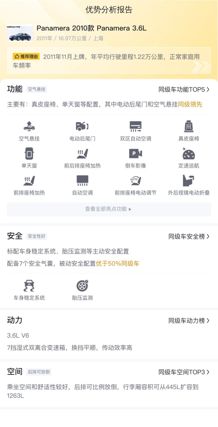 综上所述的新车含税价、用车成本、市场行情、优势分析、同款比价等数据仅供参考。在配置部分,因为二手车非标品,车辆可能会存在配置改装的情况,具体车况信息需要线下结合车辆实际情况进行综合参考。