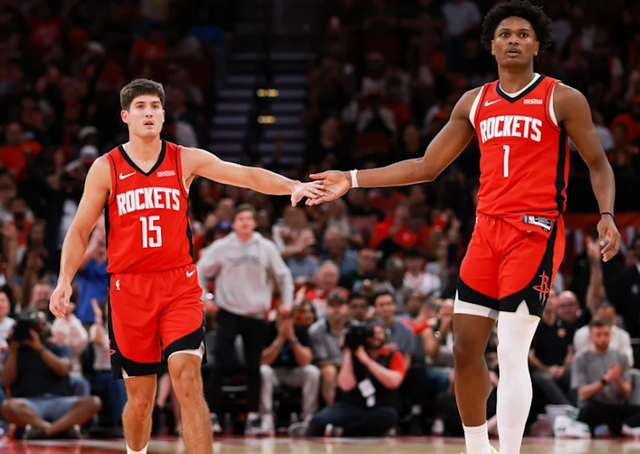 爵士想冲一把附加赛,马尔卡宁打出了职业生涯最好的状态,场均得分超过28分。但是和火箭相比,爵士的实力差距还是很明显的。即使没有杜兰特,火箭大概率也能拿下对手。