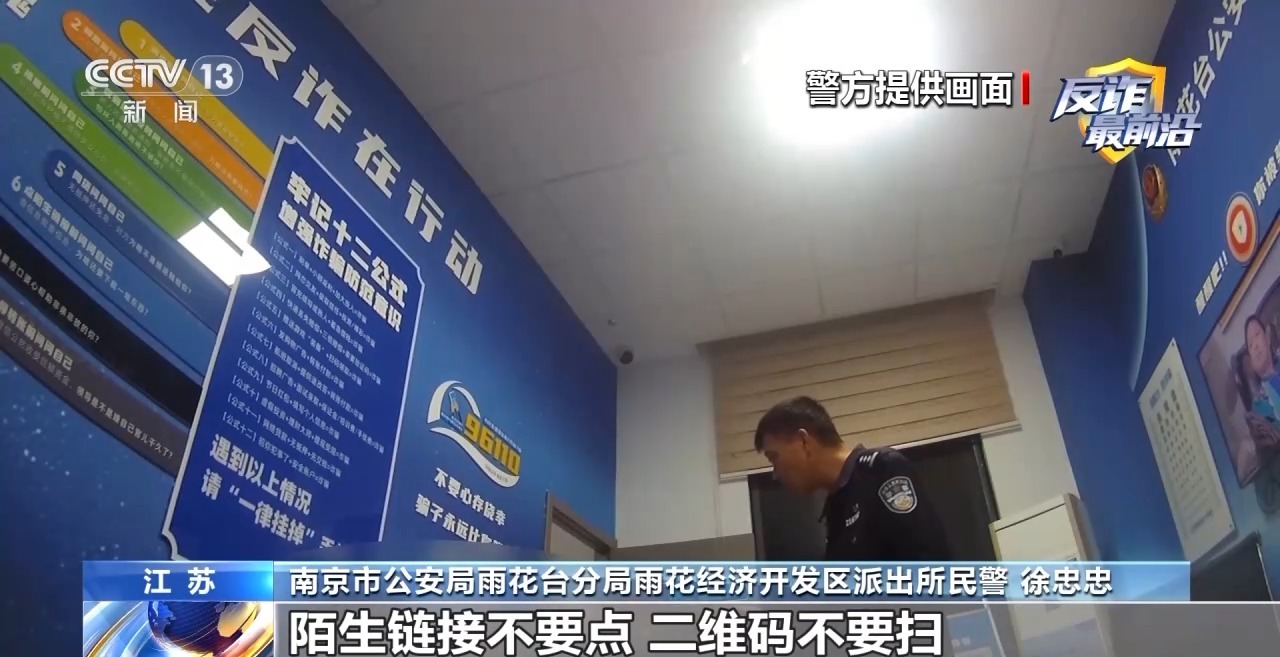 南京市公安局雨花台分局雨花经济开发区派出所民警 徐忠忠:那些App就不要下载了,陌生链接不要点,二维码不要扫,还有陌生人叫你加什么群的,不要贪这些小便宜。